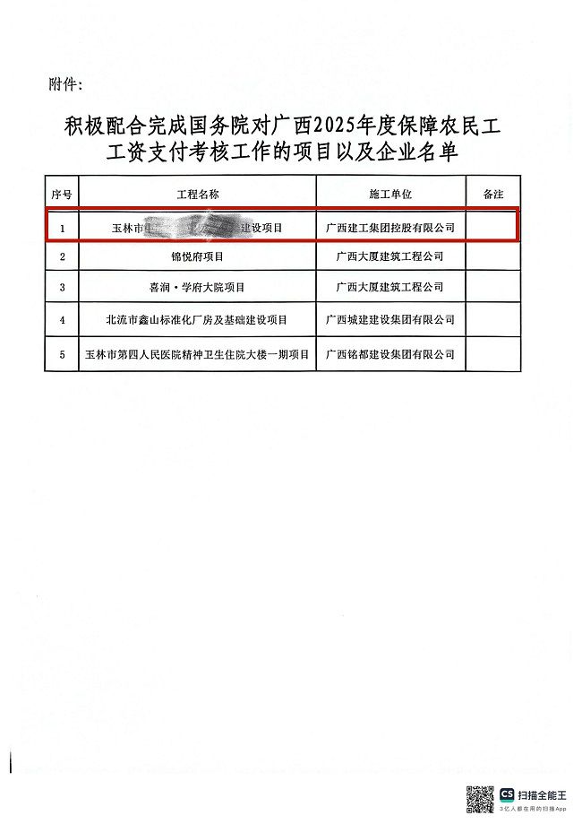 近日,玉林市住房和城乡建设局发布《关于表扬积极配合完成国务院对广西2025年度保障农民工工资支付考核工作企业的通报》,对在考核工作中作出较大贡献的企业予以...