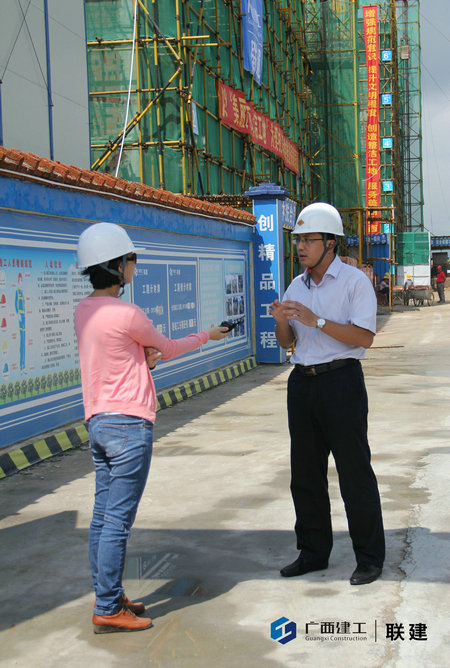 为宣传报道“美丽广西·清洁工地”活动开展情况,8月27日,广西电视台记者到公司宾阳保障房项目采访。自治区住建厅建管处领导黎旭彪、联建公司副总经理张强和社区群众接受了采访。